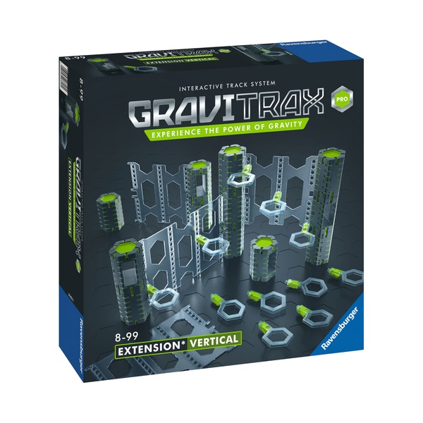 Le set de construction GraviTrax Pro complétera à merveille votre gamme de GraviTrax. Avec ce set de jeu, vous pourrez améliorer vos circuits à l’infini en les développant en hauteur. Ce set d’extension vertical vous fera prendre de la hauteur grâce à des murs, piliers et balcons. Ainsi, vous pourrez monter toujours plus haut en utilisant moins de blocs. Vous pourrez créer des circuits vertigineux à l’infini pour ensuite propulser les billes à toute vitesse. Et pourquoi ne pas faire la course avec des amis ? Cette extension n’est pas un starter pack, vous devez disposer d’un Starter set afin de créer des circuits. Ce jeu est compatible avec toute la gamme GraviTrax (standard et pro). Cette boîte de GraviTrax contient 33 éléments : 4 piliers creux, 8 murs pleins, 2 murs moyens, 2 murs larges, 16 balcons simples, Une notice d’utilisation.