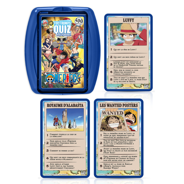 Grâce à ce quiz de 500 questions illustrées sur l’univers unique de One Piece, devenez le roi des pirates en répondant correctement à toutes les questions sur les personnages comme Luffy, Nami, Zoro ou Robin ou sur chacun des moments décisifs de l’épopée vers le fabuleux trésor légendaire.